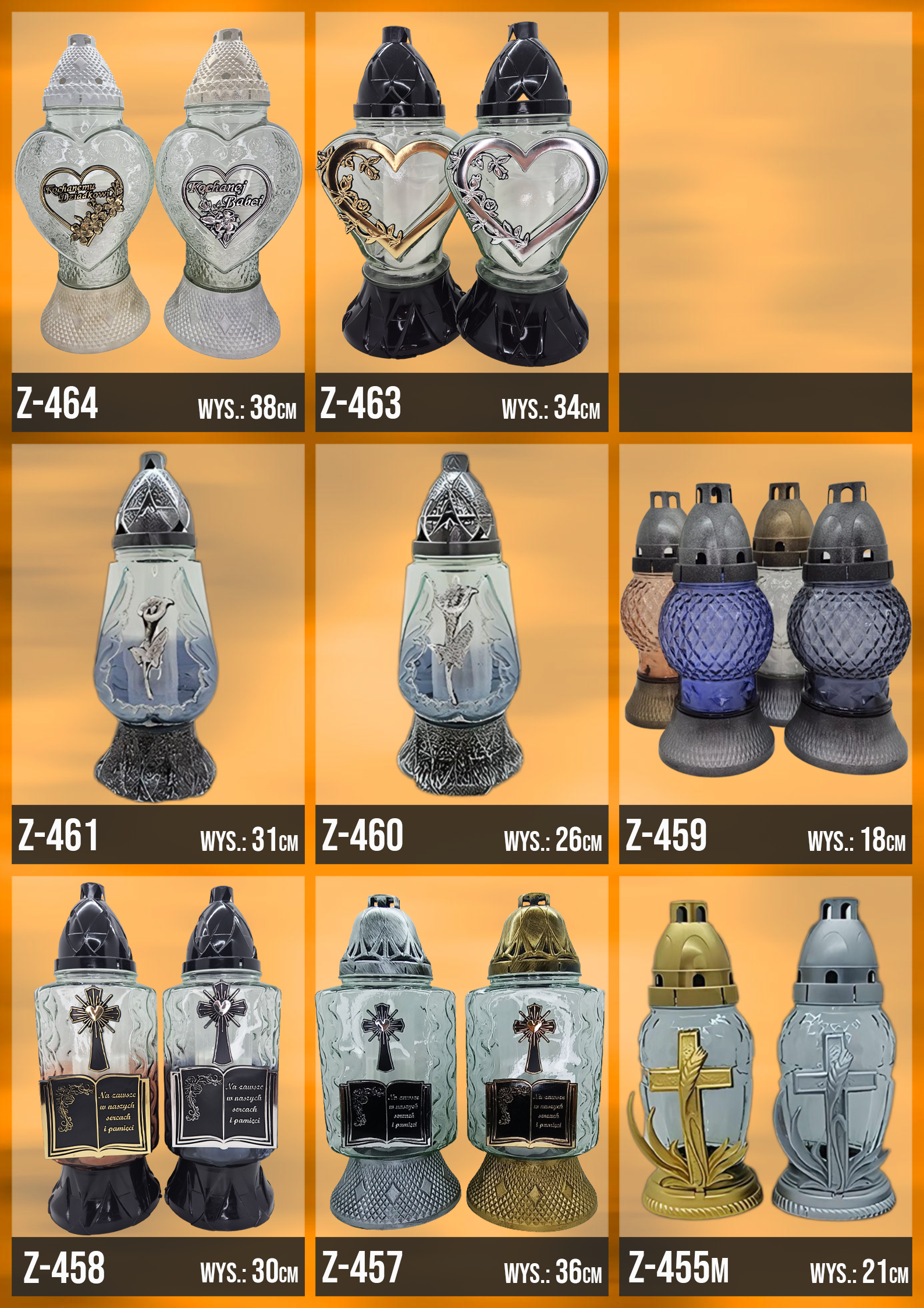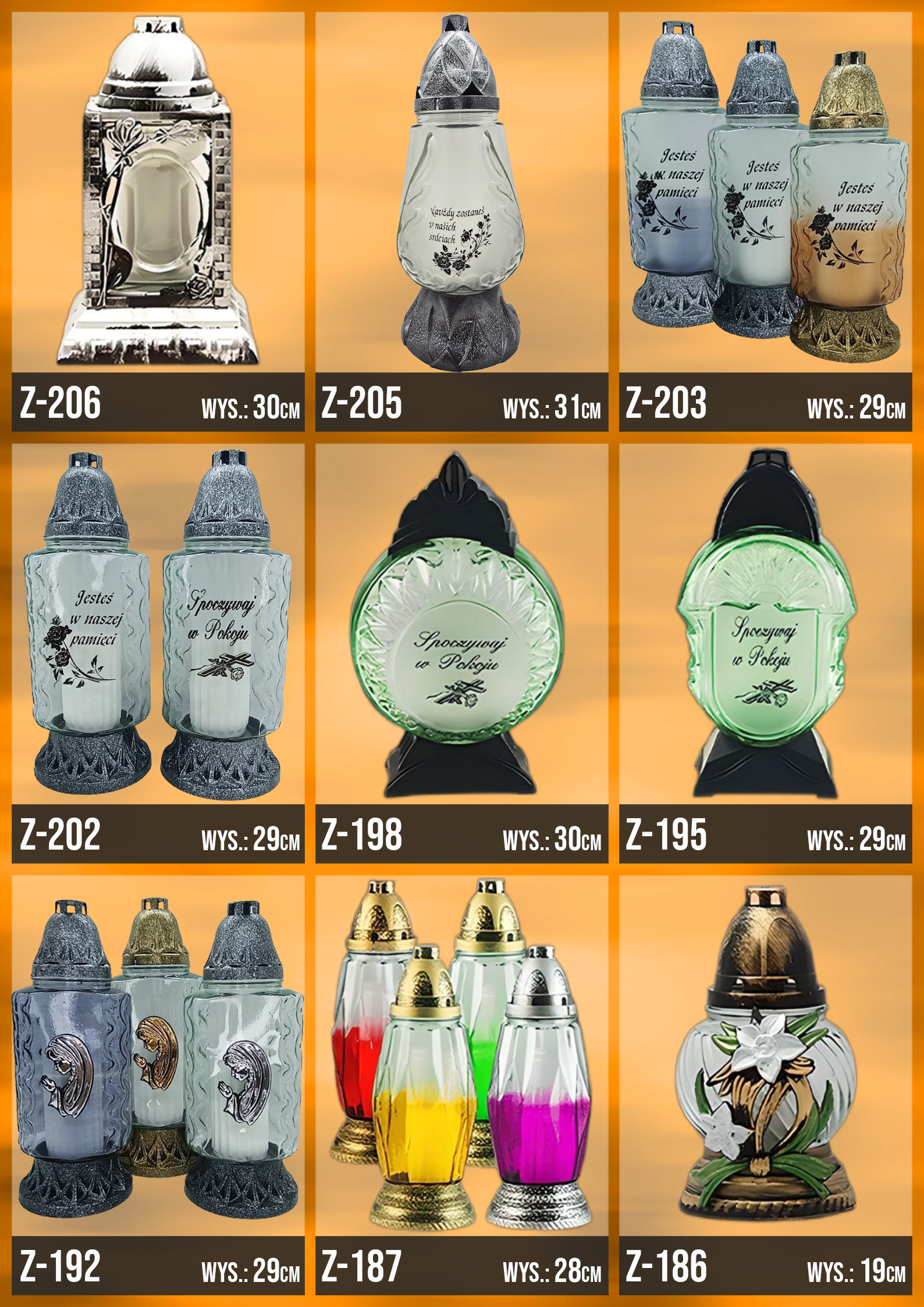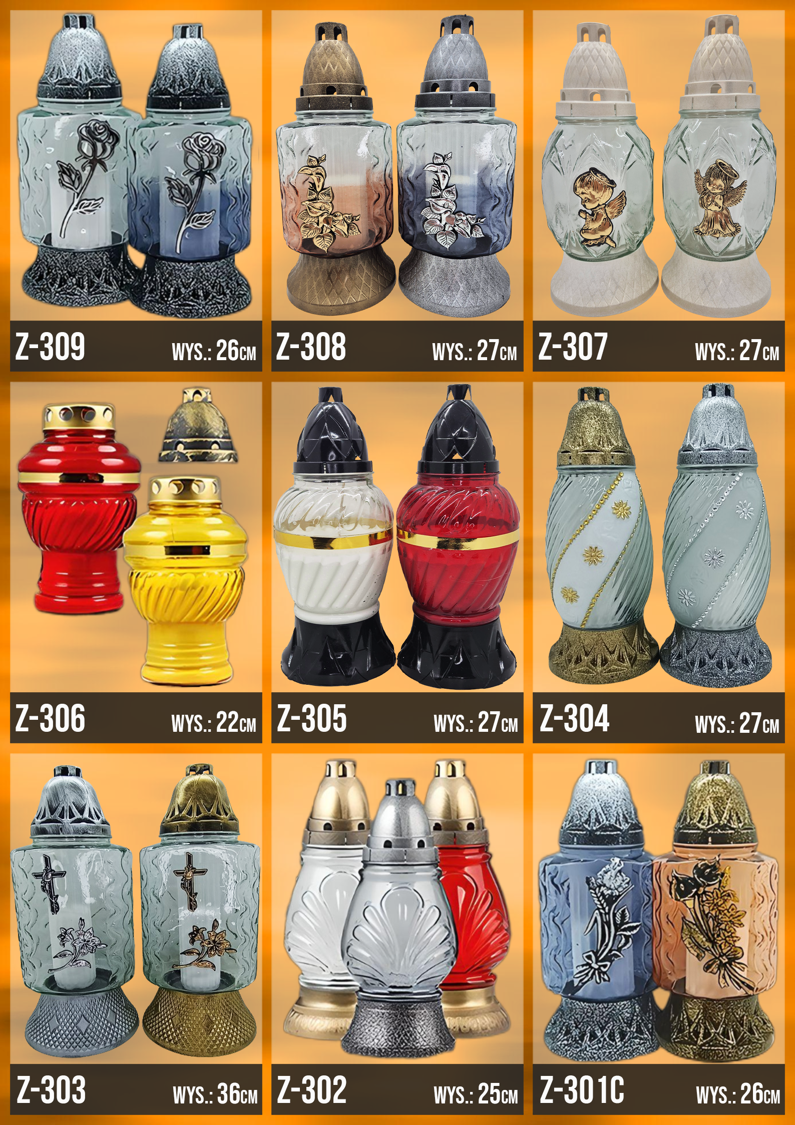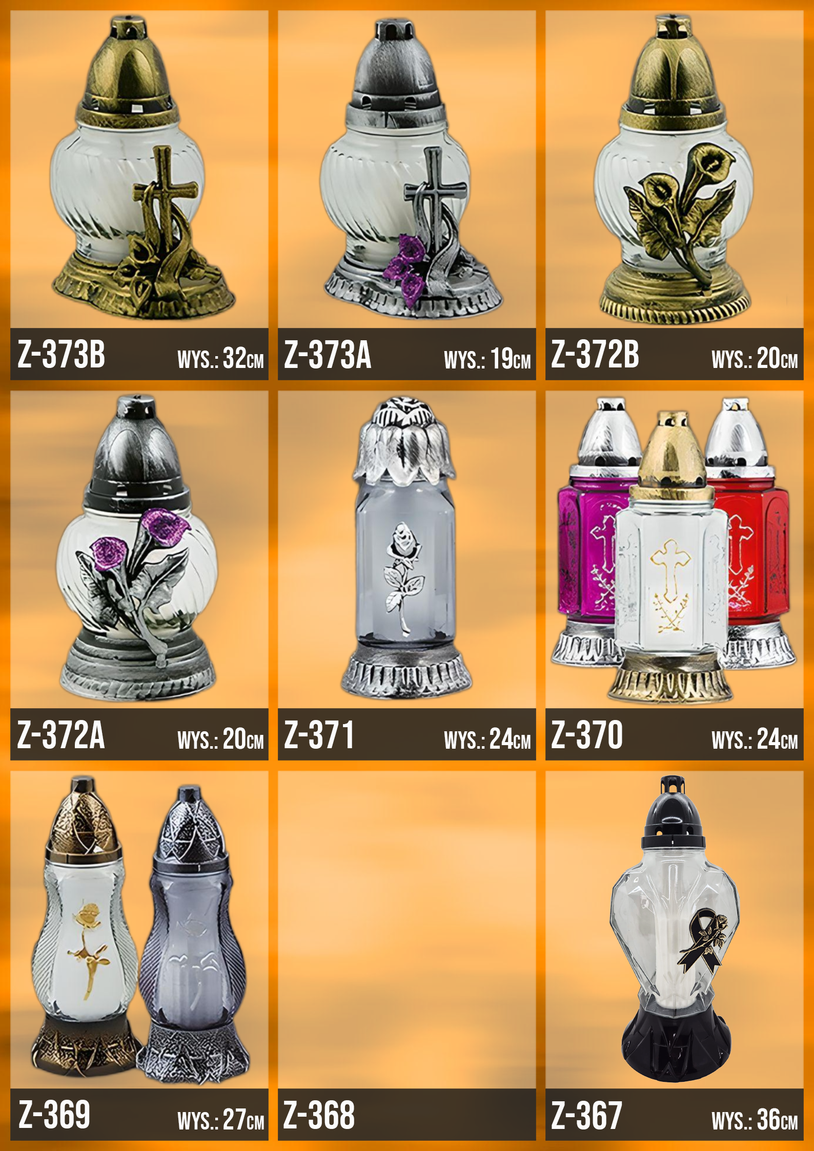 Poniżej znajduje się katalog z naszą całą dostępną ofertą, znajdziesz w niej każdy oferowany przez nasz wzór zniczy!