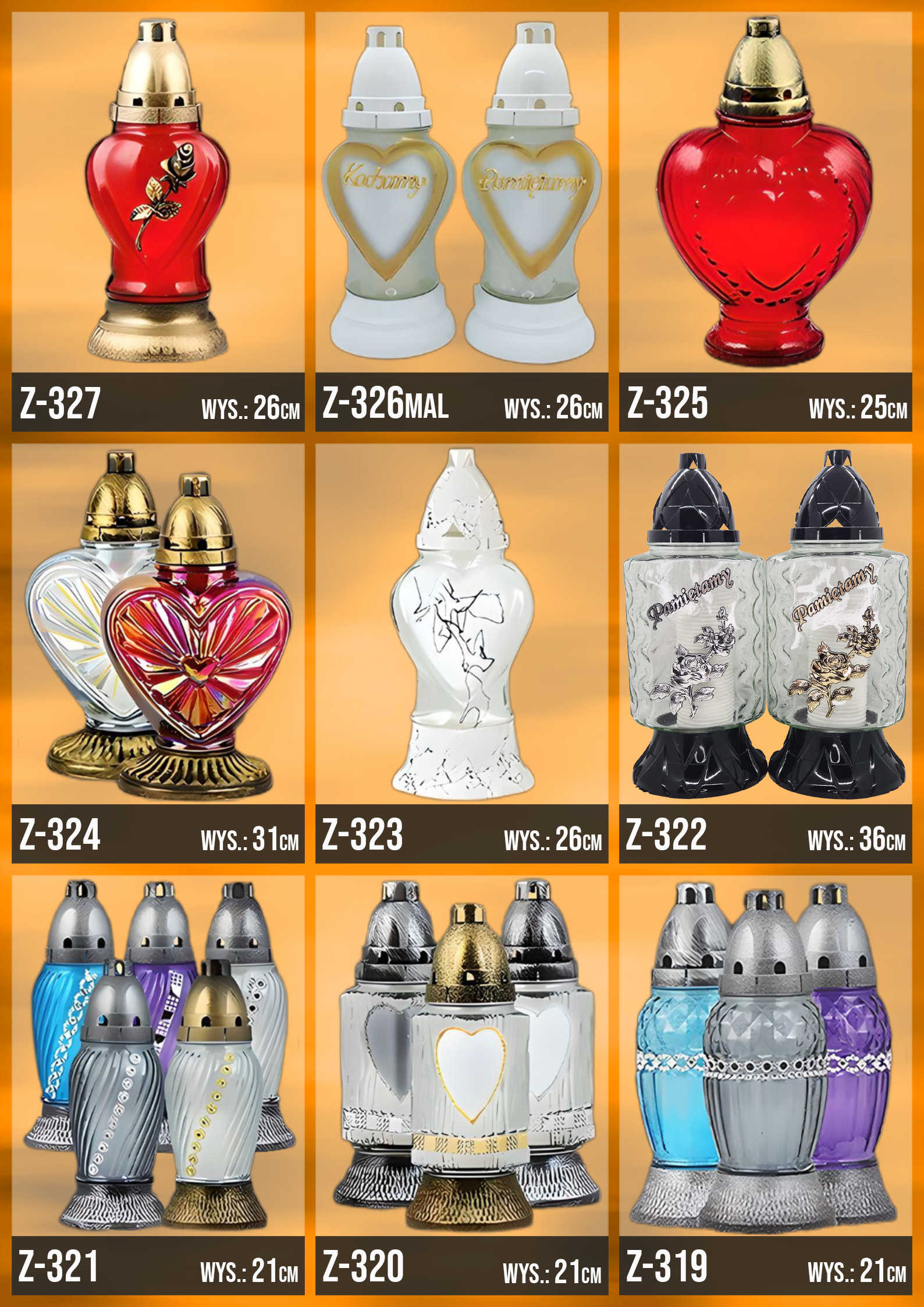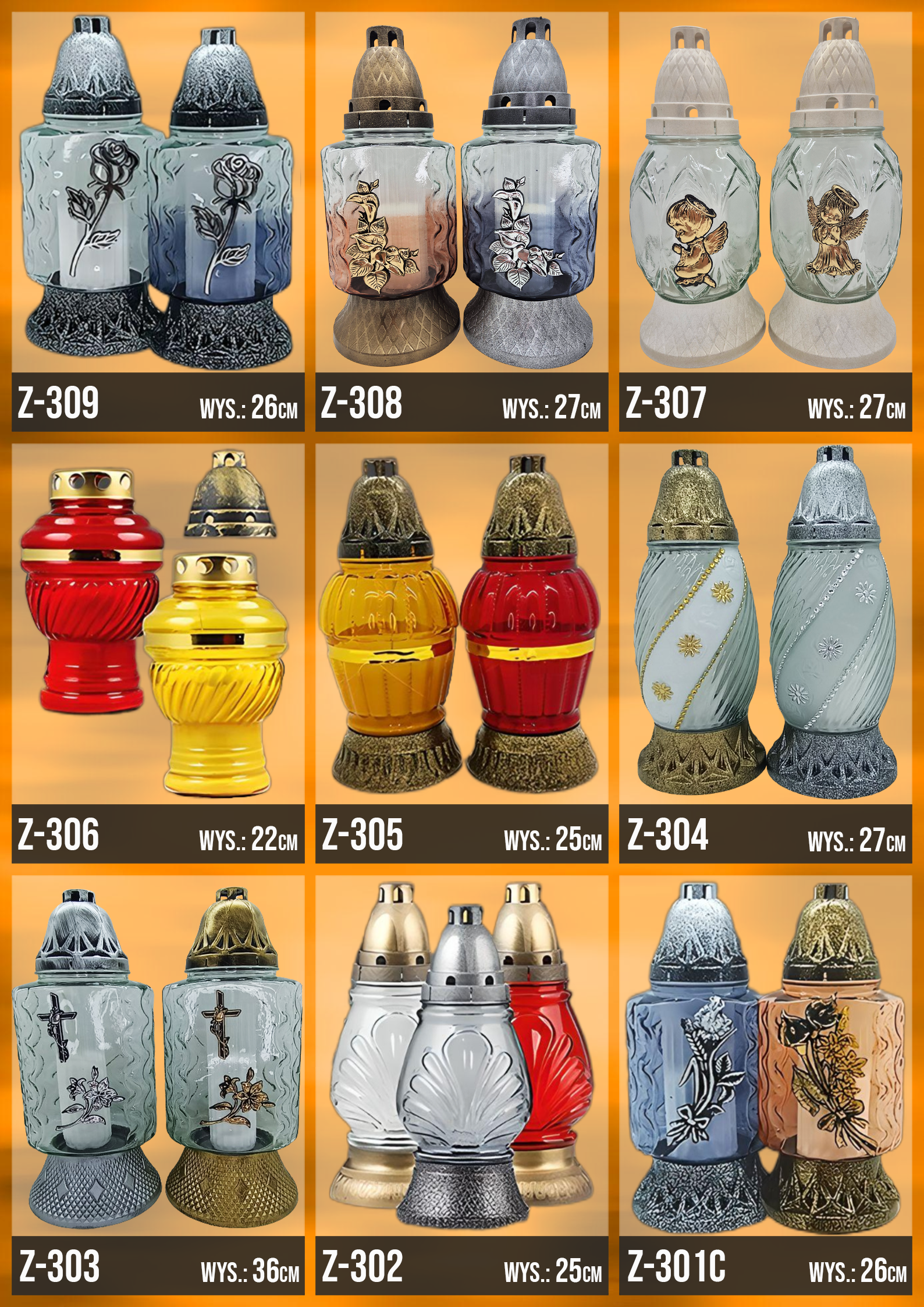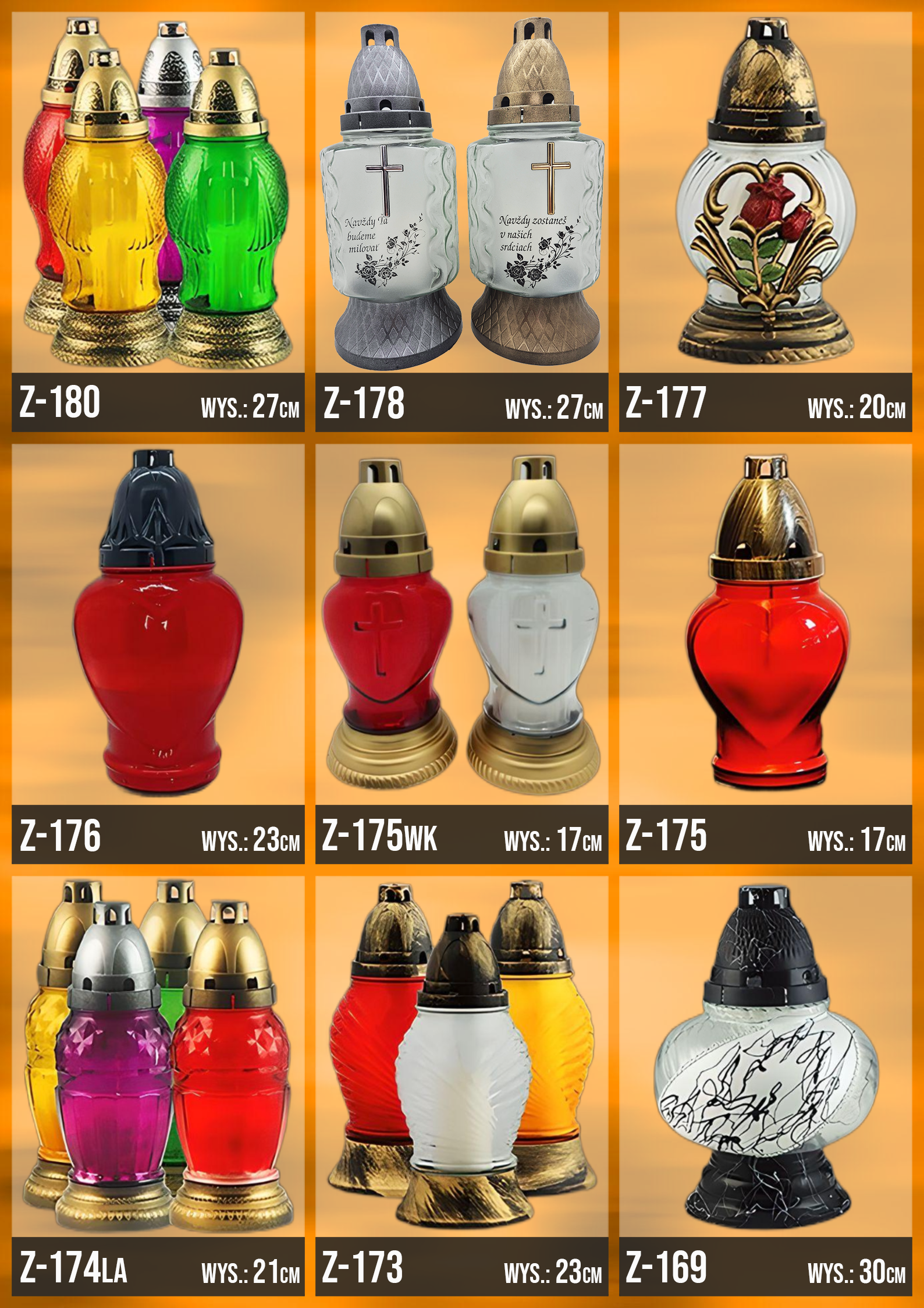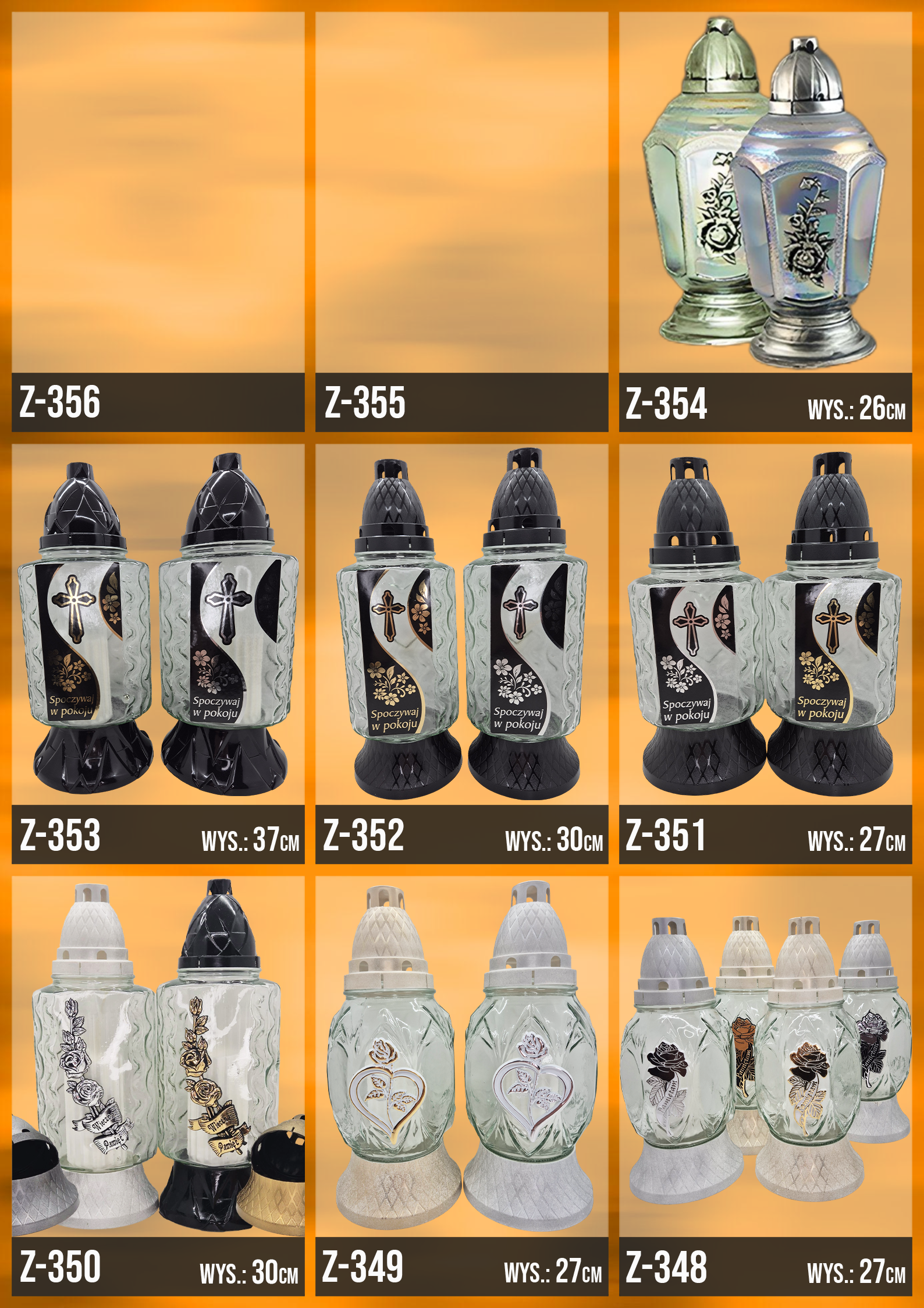 Poniżej znajduje się katalog z naszą całą dostępną ofertą, znajdziesz w niej każdy oferowany przez nasz wzór zniczy!