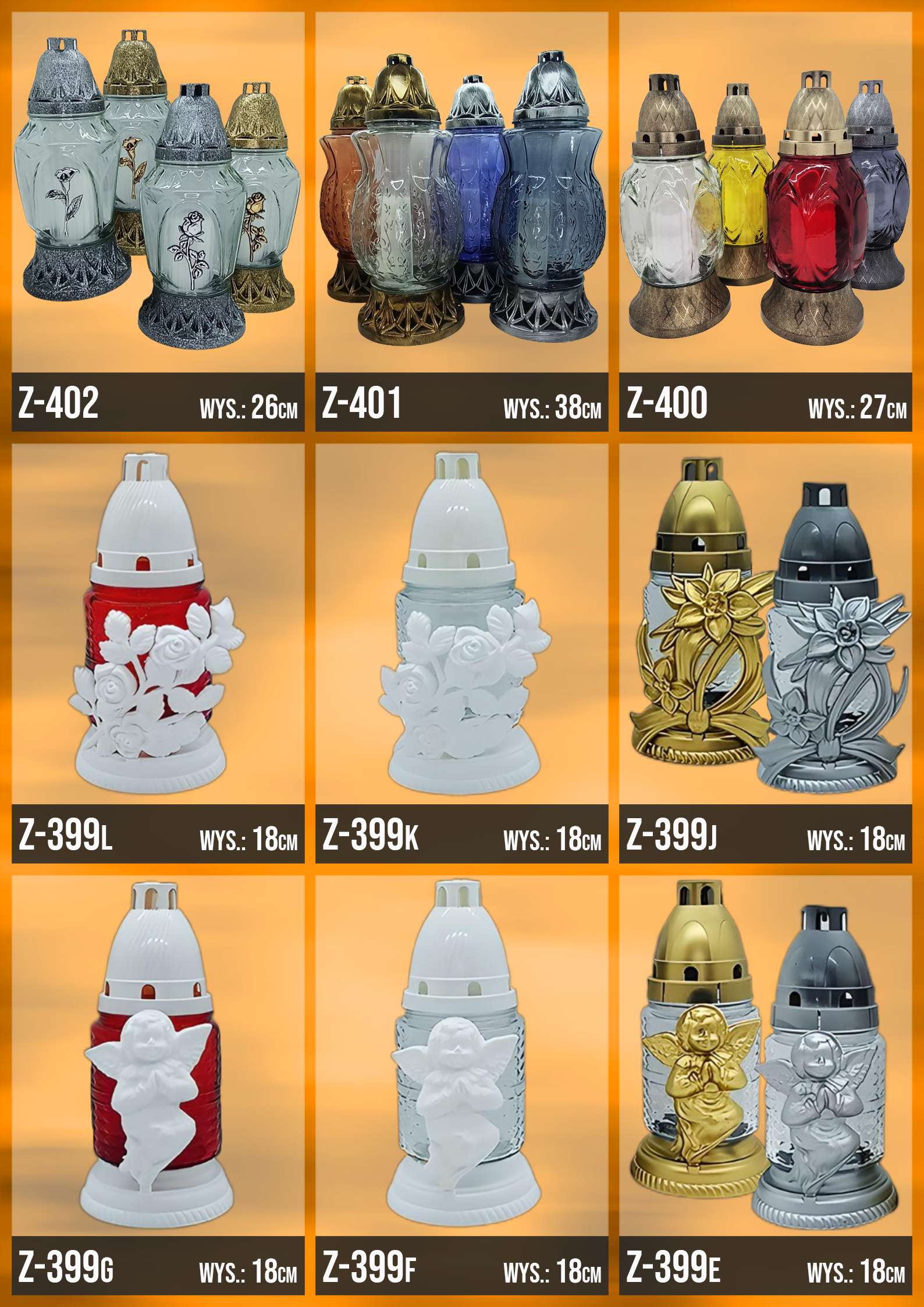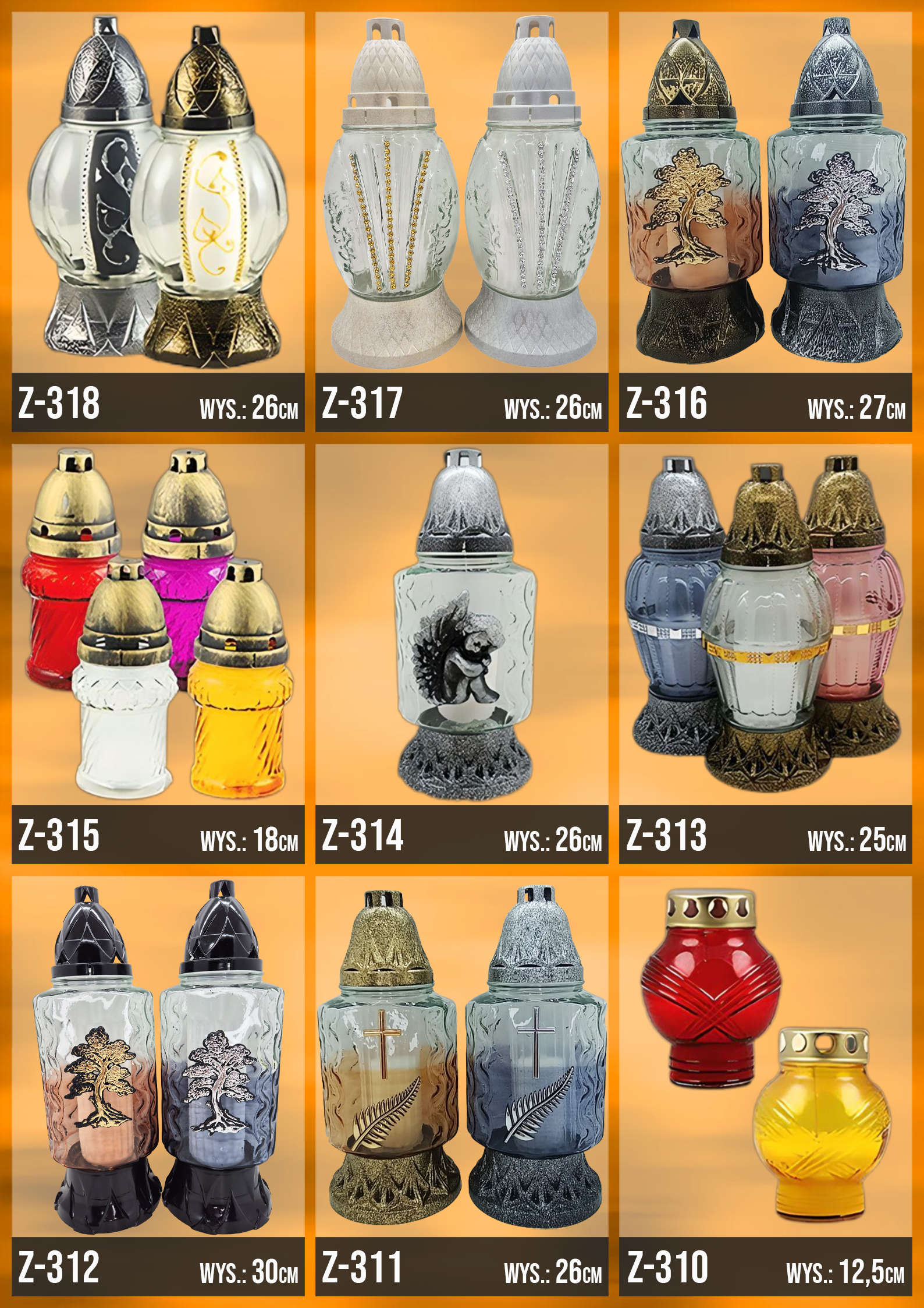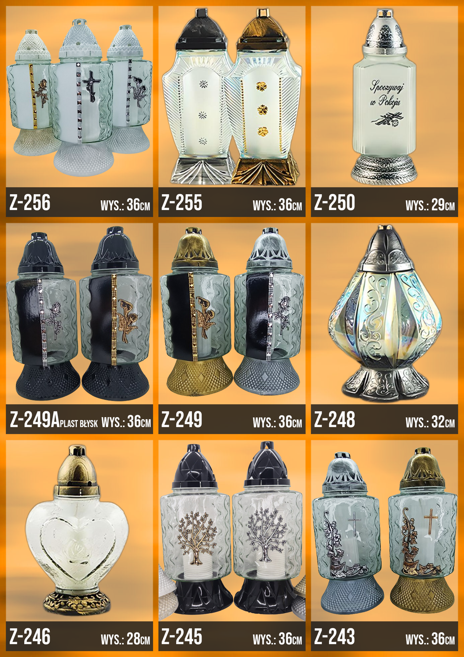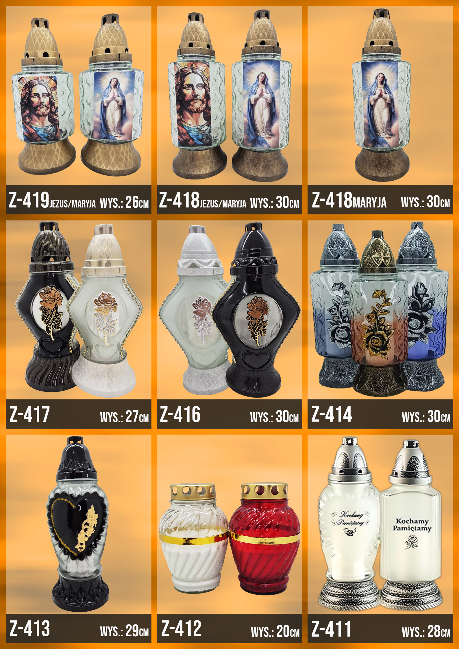 Poniżej znajduje się katalog z naszą całą dostępną ofertą, znajdziesz w niej każdy oferowany przez nasz wzór zniczy!
